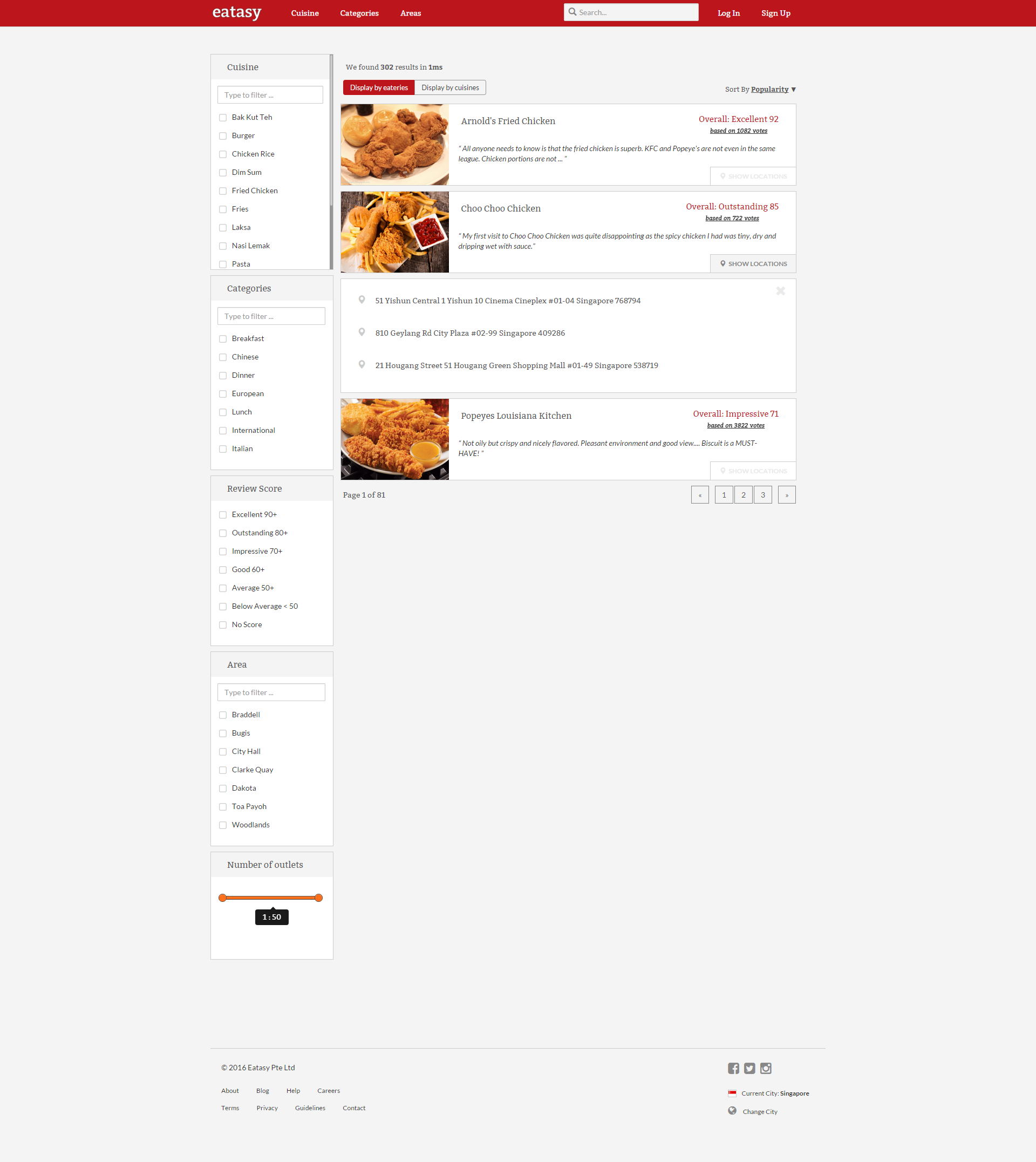 The difference with Eatasy is that reviewers can also rate individual dish. On top of that, they can search for the best specific dish in each city.