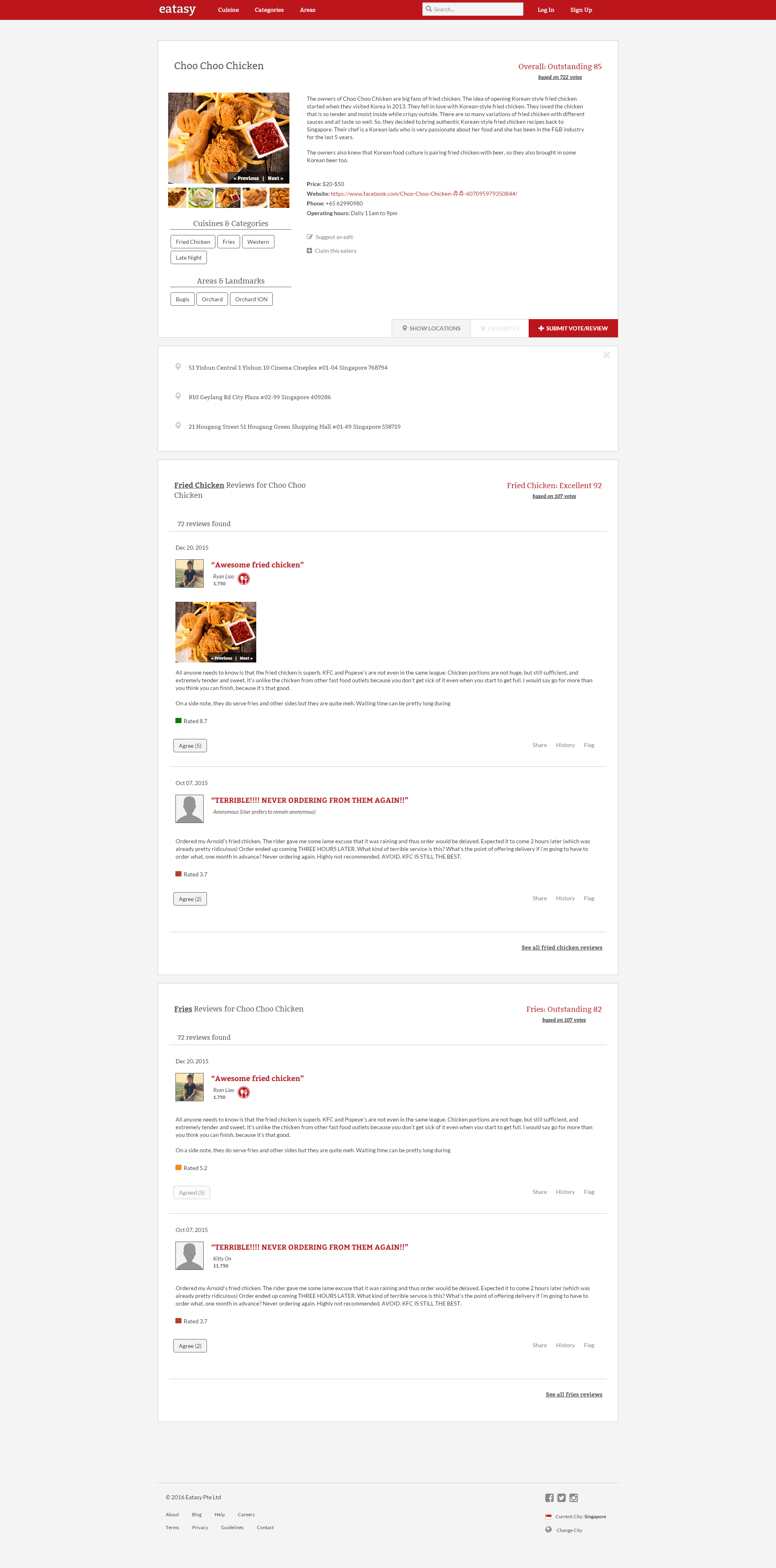 For initial eatery listing profile details, I scrape from sites like Tripadvisor, OpenRice, Foursquare, Yelp, HungryGoWhere.