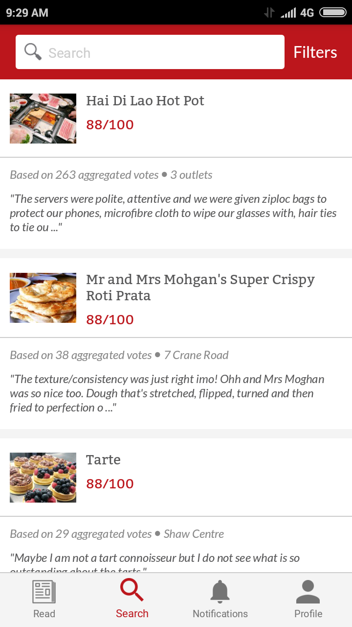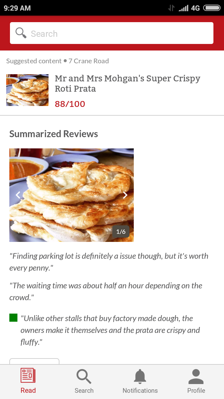 Google Place API at that time also allows us to retrieve excerpts of reviews. I combined it sentiment analysis to extract pros and cons of each food listing.