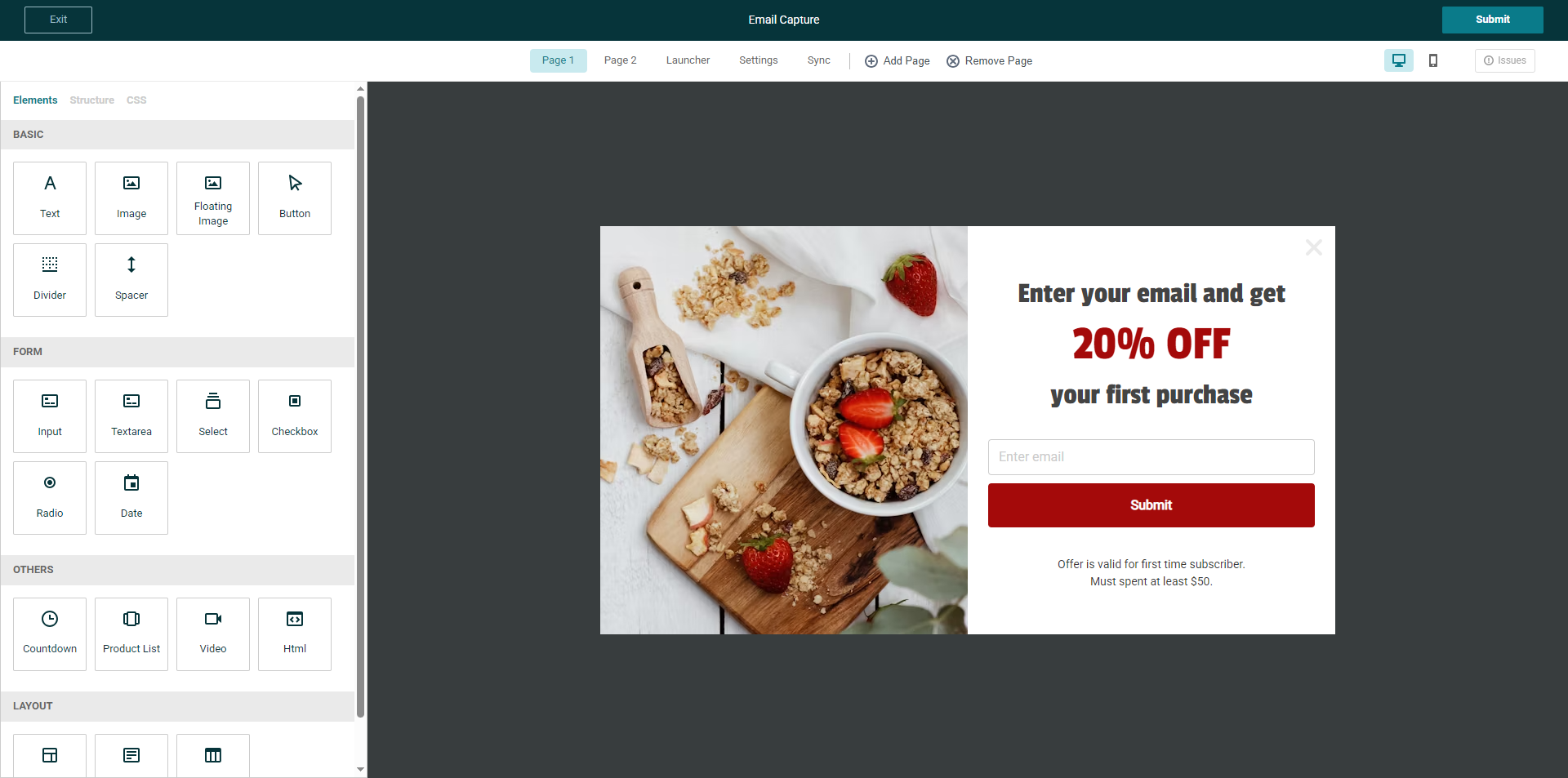 Abandonment Protector: Use exit popup to give user discount when a user with cart items intents to exit.
