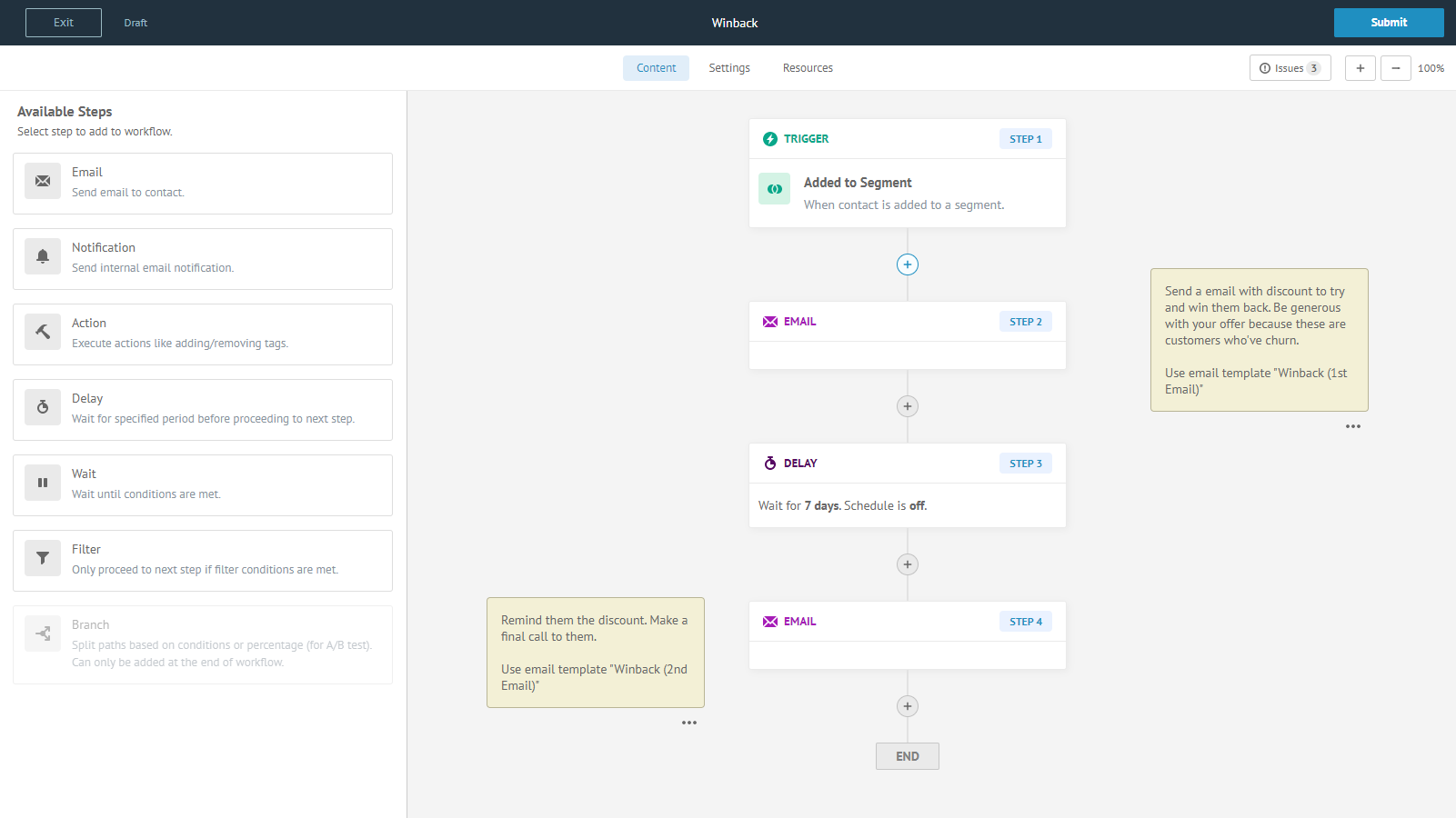 The email marketing app has tons of features like email editor, workflow automations, contact profiles, segmentation etc.